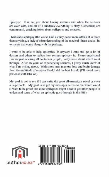 Epilepsy: It is not just about having seizures and when the seizures are over with, and all of a suddenly everything is okay. Comedians are continuously cracking jokes about epileptics and seizures. I had status epilepsy (the worse kind as they occur more often). It is more than anything, a lack of misunderstanding of the medical illness and all its torments that come along with the package. I want to be able to help epileptics (in anyway I can) and get a lot of doctors and others to realize how serious epilepsy is. Please understand I'm not just mocking all doctors or people, I only mean about what I went through. After 46 years of experiencing seizures, I pretty much know of what I'm writing about. With short-term memory loss and brain damage from the multitude of seizures I had, I did the best I could (I'll reveal more personal stuff later on). My goal is not to see if I can write the great all-American novel or even a large book. My goal is to get my messages across to the whole world (I want to be proof that other epileptics might need to get other people to understand some of what an epileptic goes through in this life).
