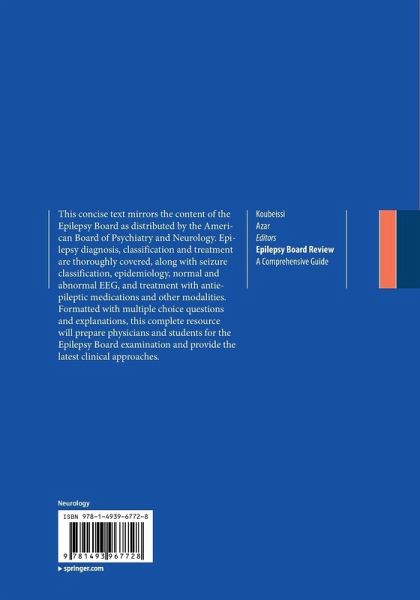 This concise text mirrors the content of the Epilepsy Board as distributed by the American Board of Psychiatry and Neurology. Epilepsy diagnosis, classification and treatment are thoroughly covered, along with seizure classification, epidemiology, normal and abnormal EEG, and treatment with antiepileptic medications and other modalities. Formatted with multiple choice questions and explanations, this complete resource will prepare physicians and students for the Epilepsy Board examination and provide the latest clinical approaches.