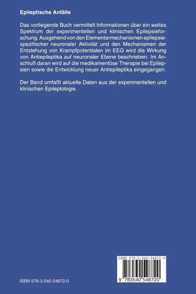 Elementarprozesse epileptischer neuronaler Aktivität.- Wirkungsmechanismen von Antikonvulsiva.- Entstehungsmechanismen von Krampfpotentialen im Elektroenzephalogramm.- Die Bedeutung des EEG in der Diagnostik und Therapie epileptischer Anfallsleiden.- Bildgebende Verfahren in der Epilepsiediagnostik.- Medikamentöse Therapie der Epilepsien - Regelbehandlung und Vorgehen bei Problemfällen.- Neue Antiepileptika.