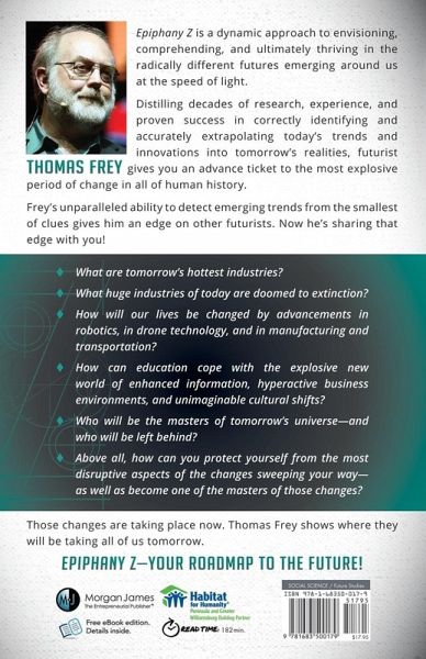 If we change someone's vision of the future, we change the way they make decisions today. Epiphany Z is guaranteed to change your vision! Don't get blindsided by the future. When understanding the present is not enough! Even thinking about the future will cause it to change, and Epiphany Zwill definitely make you think!