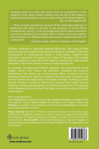Bishops, Moderators, Apostles, Regional Ministers - the range of titles given to those who exercise some form of translocal oversight of Christian communities in contemporary Britain is wide indeed. Together they represent a spectrum of response to a range of dynamics that include biblical foundations, received church tradition, present felt needs and the demands of the wider cultural context of contemporary life. In 'Episkope,' Standing and Goodliff, together with experienced church leaders drawn from across the churches, establish the common foundations that inform our conversations about translocal ministry and map present models and experience of ecclesial oversight. Building on these shared insights a variety of themes are explored that might help the selection, training and deployment of translocal ministry be fit for purpose in the changing cultural context that faces twenty-first century Christian communities. Contributors include : Anne Hollinghurst on gender and oversight, Stephen Cottrell on oversight within the Anglican context Diane Tidball on oversight in the Baptist church Terry Virgo on oversight in new church streams David Muir on oversight within black majority churches Ian Mobsby on oversight in new monastic communities