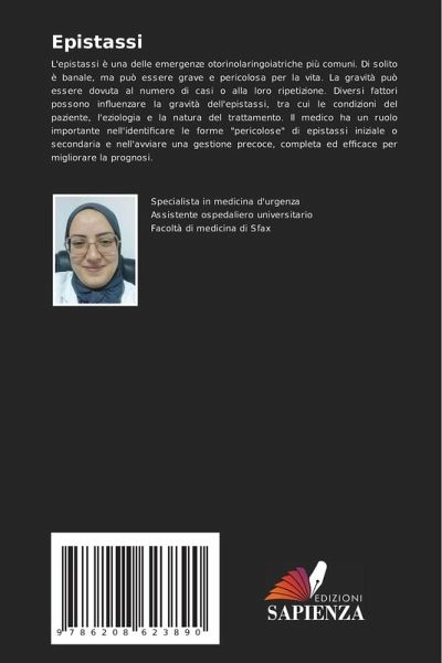 L'epistassi è una delle emergenze otorinolaringoiatriche più comuni. Di solito è banale, ma può essere grave e pericolosa per la vita. La gravità può essere dovuta al numero di casi o alla loro ripetizione. Diversi fattori possono influenzare la gravità dell'epistassi, tra cui le condizioni del paziente, l'eziologia e la natura del trattamento. Il medico ha un ruolo importante nell'identificare le forme "pericolose" di epistassi iniziale o secondaria e nell'avviare una gestione precoce, completa ed efficace per migliorare la prognosi.