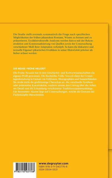 Die Studie widmet sich den frühen deutschen pikaresken Texten des 17. Jahrhunderts (Albertinus' "Gusman", Frewdenholds "Guzman. Dritter Theil" und der "Justina Dietzin Picara genandt"), wobei erstmals systematisch die Frage nach spezifischen Möglichkeiten der frühen pikaresken Romane, Wissen zu formen und zu präsentieren, gestellt wird. Kritisch anknüpfend an die bestehende Forschung, die für die 'novela picaresca' in Deutschland lediglich eine Adaptation für die religiöse Unterweisung annimmt, konzentriert sich die Arbeit darüber hinausgehend auf die erzähltechnischen und semantischen Spezifika der pikaresken Texte. Ausgehend von einem akteurzentrierten dynamischen Wissensbegriff unterscheidet sie ein narrativ geformtes Erfahrungswissen von einem argumentativ geformten festen Wissen. Auf dieser konzeptuellen Unterscheidung aufbauende erzählstrukturelle Analysen werden mit der Rekonstruktion und Kontextualisierung von Quellen sowie der Untersuchung verschiedener Modi ihrer Adaptation verknüpft. Auf diese Weise erfasst die Studie präzise die diskursive und textuelle Eigenart des pikaresken Erzählens und leistet zugleich einen Beitrag zur Historisierung der Relation von Wissen und Erzählen.