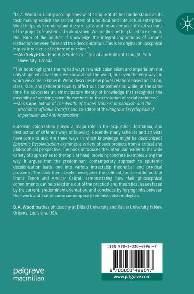 European colonization played a major role in the acquisition, formation, and destruction of different ways of knowing. Recently, many scholars and activists have come to ask: Are there ways in which knowledge might be decolonized? Epistemic Decolonization examines a variety of such projects from a critical and philosophical perspective. The book introduces the unfamiliar reader to the wide variety of approaches to the topic at hand, providing concrete examples along the way. It argues that the predominant contemporary approach to epistemic decolonization leads one into various intractable theoretical and practical problems. The book then closely investigates the political and scientific work of Frantz Fanon and Amílcar Cabral, demonstrating how their philosophical commitments can help lead one out of the practical and theoretical issues faced by the current, predominant orientation, and concludes by forging links between their work and that of some contemporary feministepistemologists.
