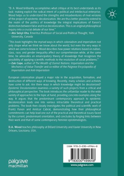 European colonization played a major role in the acquisition, formation, and destruction of different ways of knowing. Recently, many scholars and activists have come to ask: Are there ways in which knowledge might be decolonized? Epistemic Decolonization examines a variety of such projects from a critical and philosophical perspective. The book introduces the unfamiliar reader to the wide variety of approaches to the topic at hand, providing concrete examples along the way. It argues that the predominant contemporary approach to epistemic decolonization leads one into various intractable theoretical and practical problems. The book then closely investigates the political and scientific work of Frantz Fanon and Amílcar Cabral, demonstrating how their philosophical commitments can help lead one out of the practical and theoretical issues faced by the current, predominant orientation, and concludes by forging links between their work and that of some contemporary feministepistemologists.