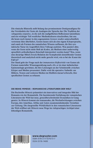 Der Band geht der Frage nach der immanenten Reflexivität von Gesten als Formen materieller Wissensgestaltung nach, d.h. er ist einer ästhetischen Epistemologie gewidmet, die ihre Leistungen an der Schnittstelle zwischen Körper und Medien prozessiert. Dafür wird die operative Ästhetik von Bildern, Texten und weiteren Medien im Hinblick darauf erforscht, ihre spezifischen Gesten zu erfassen.