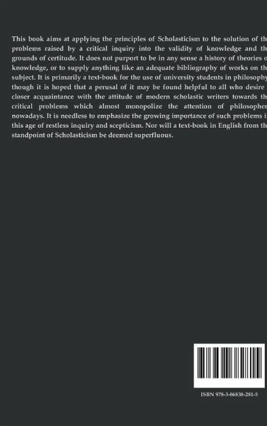 This book aims at applying the principles of Scholasticism to the solution of the problems raised by a critical inquiry into the validity of knowledge and the grounds of certitude. It does not purport to be in any sense a history of theories of knowledge, or to supply anything like an adequate bibliography of works on the subject. It is primarily a text-book for the use of university students in philosophy, though it is hoped that a perusal of it may be found helpful to all who desire a closer acquaintance with the attitude of modern scholastic writers towards the critical problems which almost monopolize the attention of philosophers nowadays. It is needless to emphasize the growing importance of such problems in this age of restless inquiry and scepticism. Nor will a text-book in English from the standpoint of Scholasticism be deemed superfluous.