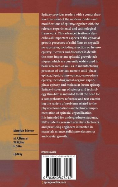 In a uniform and comprehensive manner the authors describe all the important aspects of the epitaxial growth processes of solid films on crystalline substrates, e.g. processes in which atoms of the growing film mimic the arrangement of the atoms of the substrate. Emphasis is put on sufficiently fundamental and unequivocal presentation of the subject in the form of an easy-to-read review. A large part of this book focuses on the problems of heteroepitaxy. The most important epitaxial growth techniques which are currently widely used in basic research as well as in manufacturing processes of devices are presented and discussed in detail.