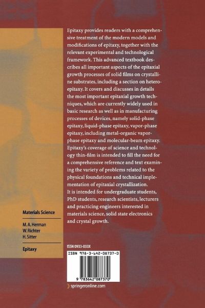 "The book ... contains experimental and theoretical aspects of the epitaxial growth process including very recent developments in a compact and clear manner. ... represents a good opportunity for the interested reader to get used to the field of epitaxial growth of materials and should be of high interest to students, scientists, and engineers working in the field of material research, device research, and solid state physics or -chemistry. ... this book should become a indispensable source of information for all crystal growers."