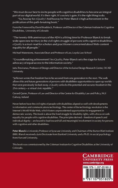 Never before have the civil rights of people with disabilities aligned so well with developments in information and communication technology. The center of the technology revolution is the Internet, which fosters unprecedented opportunities for engagement in democratic society. The Americans with Disabilities Act likewise is helping to ensure equal participation in society by people with disabilities. Globally, the Convention on the Rights of Persons with Disabilities further affirms that persons with disabilities are entitled to the full and equal enjoyment of fundamental personal freedoms. This book is about the lived struggle for disability rights, with a focus on Web equality for people with cognitive disabilities, such as intellectual disabilities, autism, and print-related disabilities. The principles derived from the right to the Web - freedom of speech and individual dignity - are bound to lead toward full and meaningful involvement in society for persons with cognitive and other disabilities.