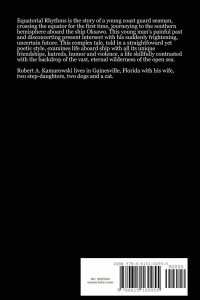 Equatorial Rhythms is the story of a coast guard seaman. This young man's painful past and disconcerting present intersect with his suddenly frightening, uncertain future. This complex tale, told in a straightforward poetic style, examines life aboard ship with all it's unique friendships, hatreds, humor and violence, a life skillfully contrasted with the backdrop of the vast, eternal wildness of the sea.