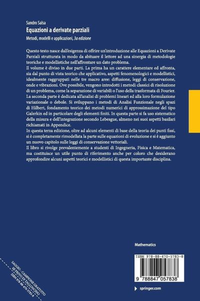 1 Introduzione.- 2 Diffusione.- 3 Equazione di Laplace.- 4 Leggi di conservazione scalari ed equazioni del prim'ordine.- 5 Onde e vibrazioni.- 6 Elementi di analisi funzionale.- 7 Distribuzioni e spazi di Sobolev.- 8 Formulazione variazionale di problemi ellittici.- 9 Formulazione debole per problemi di evoluzione.