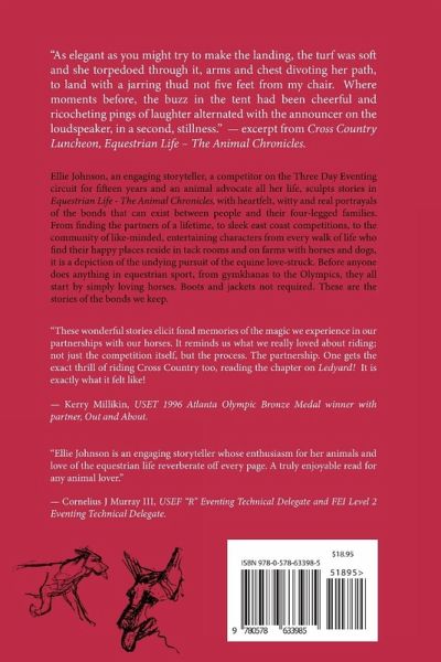 Ellie Johnson, a competitor on the Three Day Eventing circuit for fifteen years and an animal advocate all her life, sculpts stories with heartfelt, witty and real portrayals of the bonds that can exist between people and their four-legged families. From finding the partners of a lifetime, to sleek east coast competitions, to the community of like-minded, entertaining characters from every walk of life who find their happy places reside in tack rooms and on farms with horses and dogs.