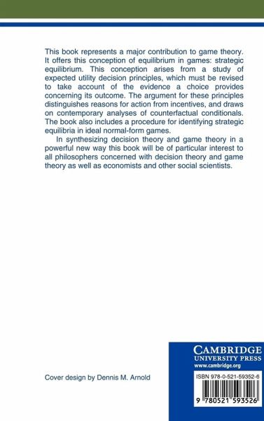 This book represents a major contribution to game theory. It offers this conception of equilibrium in games: strategic equilibrium. This conception arises from a study of expected utility decision principles, which must be revised to take account of the evidence a choice provides concerning its outcome. The argument for these principles distinguishes reasons for action from incentives, and draws on contemporary analyses of counterfactual conditionals. The book also includes a procedure for identifying strategic equilibria in ideal normal-form games. In synthesizing decision theory and game theory in a powerful way this book will be of particular interest to all philosophers concerned with decision theory and game theory as well as economists and other social scientists.