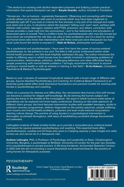 Based on over a decade of sustained longitudinal research with a broad range of different user groups, On Equine-Assisted Psychotherapy and Coaching: An Evidence-Based Framework is an essential guide which offers both theoretical foundations and practical models for working with horses in psychotherapy and coaching.