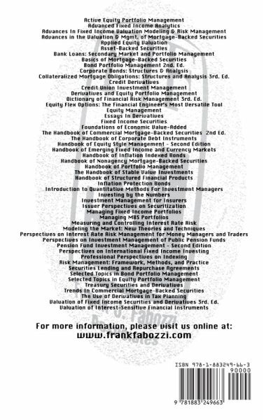 Peter K. Nevitt is one of the pioneers of equipment leasing with over thirty-five years of experience. He is generally credited with being one of the inventors of leveraged leasing and synthetic leasing. Up until 1998 he headed Mitsui Nevitt Capital Corporation for ten years. Prior to that, he served for ten years first as President then as Chairman of BankAmeriLease. Nevitt was also the founder and president of two other leasing companies, GATX Leasing Corporation and First Chicago Leasing Corporation. Nevitt now provides advice to leasing companies as a consultant. He has authored two other books and over 100 articles and booklets on leasing and equipment financing.Mr. Nevitt is an attorney and received his BS and JD from Northwestern University. Frank J. Fabozzi is editor of the Journal of Portfolio Management and an Adjunct Professor of Finance at Yale University's School of Management. Frank is a Chartered Financial Analyst and Certified Public Accountant. He is on the board of directors of the Guardian Life family of funds and the BlackRock complex of funds. He earned a doctorate of economics from the City University of New York in 1972 and in 1994 received an honorary doctorate of Human Letters from Nova Southeastern University. Frank is a Fellow of the International Center for Finance at Yale University.