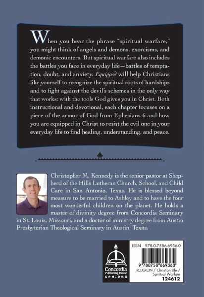 The devil is working daily to make you turn away from your faith. Sometimes though, it's not in grand efforts, but in the small ones your encounter every day. The devil can work through exhaustion, anxiety, temptation, and frustration, all common daily occurrences. But God provides strength to battle the devil's ways by giving you His armor. Follow along in Ephesians 6 to see the armor God equips you with to defend yourself against Satan. Each piece of armor-belt of truth, breastplate of righteousness, shoes of peace, shield of faith, helmet of salvation, sword of the spirit-is given for you to defend yourself with. They all help you in various ways during the day, such as seeing the truth through lies, and walking with peace to keep stress away. Discover them all with Rev. Christopher Kennedy. This book also includes an index of prayers and scripture for when you feel that the devil's attacks need extra defense against. Additionally, a leader guide is included for you to use as you work through the book by yourself, but more importantly, with others. This book is meant to be shared and worked through with those in your life that are suffering, and this leader guide makes it easy to guide your loved one to God's armor. Use it as a means of outreach to those around you.