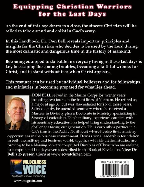 As the end-of-this-age draws to a close, the sincere Christian will be called to take a stand and enlist in God's army. In this handbook, Dr. Don Bell reveals important principles and insights for the Christian who decides to be used by the Lord during the most dramatic and dangerous time in the history of mankind. Becoming equipped to do battle in everyday living in these last days is key to escaping the coming troubles, becoming a faithful witness for Christ, and to stand without fear when Christ appears. This resource can be used by individual believers and for fellowships and ministries in becoming prepared for what lies ahead.