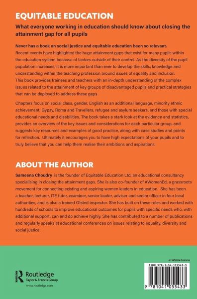 Chapter 1 Introduction Chapter 2 Social class Chapter 3 Gender Chapter 4 English as an additional language Chapter 5 Minority ethnic achievement Chapter 6 Gypsy, Roma and Travellers Chapter 7 Refugee and asylum seekers Chapter 8 Special educational needs and disabilities Chapter 9 Leadership Chapter 10 Bringing it all together Bibliography Index