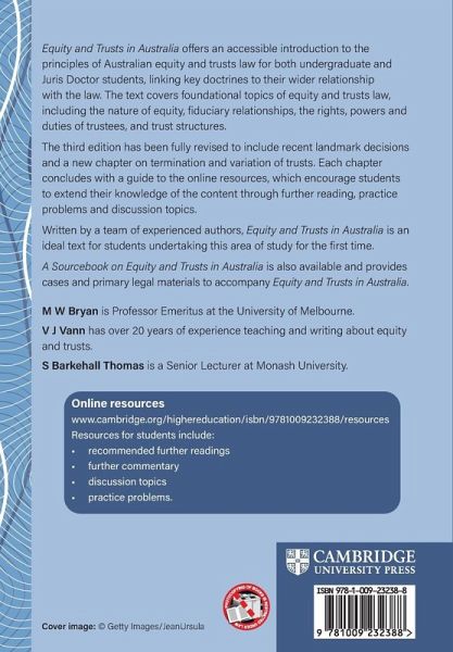 Equity and Trusts in Australia offers an accessible introduction to the principles of Australian equity and trusts law for students, linking key doctrines to their wider relationship with the law. The text covers foundational topics of equity and trusts law, including the nature of equity, fiduciary relationships and trust structures.