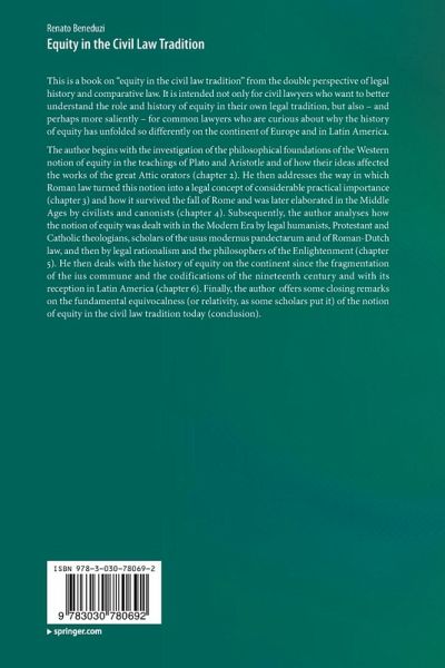 This is a book on "equity in the civil law tradition" from the double perspective of legal history and comparative law. It is intended not only for civil lawyers who want to better understand the role and history of equity in their own legal tradition, but also - and perhaps more saliently - for common lawyers who are curious about why the history of equity has unfolded so differently on the continent of Europe and in Latin America.