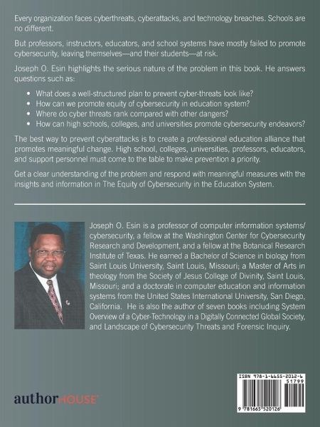 Every organization faces cyberthreats, cyberattacks, and technology breaches. Schools are no different. But professors, instructors, educators, and school systems have mostly failed to promote cybersecurity, leaving themselves-and their students-at risk. Joseph O. Esin highlights the serious nature of the problem in this book. He answers questions such as: ¿ What does a well-structured plan to prevent cyber-threats look like? ¿ How can we promote equity of cybersecurity in education system? ¿ Where do cyber threats rank compared with other dangers? ¿ How can high schools, colleges, and universities promote cybersecurity endeavors? The best way to prevent cyberattacks is to create a professional education alliance that promotes meaningful change. High school, colleges, universities, professors, educators, and support personnel must come to the table to make prevention a priority. Get a clear understanding of the problem and respond with meaningful measures with the insights and information in The Equity of Cybersecurity in the Education System.