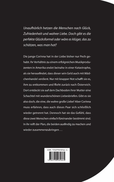 Unaufhörlich hetzen die Menschen nach Glück, Zufriedenheit und wahrer Liebe. Doch gibt es die perfekte Glücksformel oder wäre es klüger, das zu schätzen, was man hat? Die junge Corinna hat in der Liebe bisher nur Pech gehabt. Ihr Verhältnis zu einem erfolgreichen Musikproduzenten in Amerika endet beinahe in einer Katastrophe, als sie herausfindet, dass dieser sein Geld auch mit Mädchenhandel verdient. Nur mit knapper Not schafft sie es, ihm zu entkommen und flieht zurück nach Österreich. Dort entdeckt sie auf dem Dachboden ihrer Mutter eine Schachtel mit wunderschönen Liebesbriefen. Gibt es sie also doch, die eine, die wahre große Liebe? Aber Corinna muss erfahren, dass auch dieses Paar sich schließlich wieder getrennt hat. Dennoch hat sie das Gefühl, dass diese zwei Menschen einfach füreinander bestimmt sind. In ihr reift der Plan, die beiden ausfindig zu machen und wieder zusammenzubringen ...