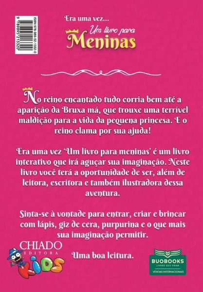 No reino Encantado tudo corria bem até a aparição da Bruxa má, que trouxe uma terrível maldição para a vida da pequena princesa. E o reino clama por sua ajuda! Era uma vez 'Um livro para meninas' é um livro interativo que irá aguçar sua imaginação. Neste livro você terá a oportunidade de s