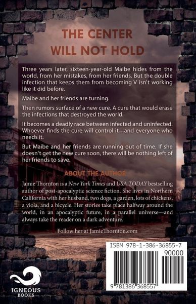 From New York Times and USA Today bestselling author Jamie Thornton comes the final book in the thrilling science fiction survival series that has readers raving about its dark and gritty thrills. THE CENTER WILL NOT HOLD. Three years later, sixteen-year-old Maibe hides from the world, from her mistakes, from her friends. But the double infection that keeps them from becoming V isn't working like it did before.Maibe and her friends are turning. Then rumors surface of a new cure. A cure that would erase the infections that destroyed the world. It becomes a deadly race between Feeb and uninfected. Whoever finds the cure will control it--and everyone who needs it. But Maibe and her friends are running out of time. If she doesn't get the new cure soon, there will be nothing left of her friends to save. "Thrilling...keeps you reading and wanting more." "I couldn't put this down." "This left me hungry for the next book." Zombies Are Human is a fast, dark apocalyptic ride. Just remember...nothing is what it seems. Get it now.