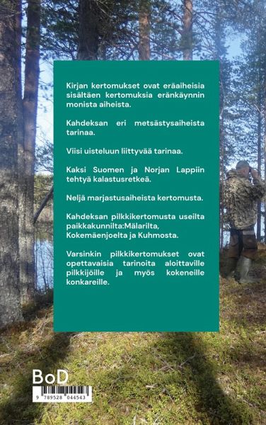 Kirja sisältää kertomuksia eränkäynnin monista aiheista. Kahdeksan metsästysaiheista tarinaa. Viisi uisteluun liittyvää. Kaksi Suomen ja Norjan Lappiin tehtyä kalastusretkeä. Neljä marjastusaiheista kertomusta. Kahdeksan pilkkikertomusta useilta eri paikkakunnilta: Mälarelta, Kokemäenjoelta ja Kuhmosta. Varsinkin pilkkikertomukset ovat opettavaisia tarinoita aloittaville pilkkijöille ja myös kokeneille konkareille.