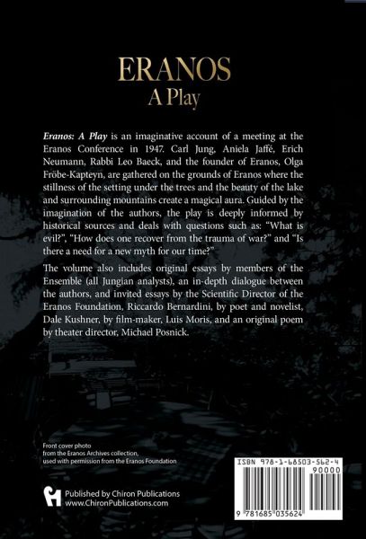 Eranos: A Play is an imaginative account of a meeting at the Eranos Conference in 1947 between Carl Jung, Aniela Jaffe, Erich Neumann, Rabbi Leo Baeck, and the founder of Eranos, Olga Fröbe-Kapteyn,