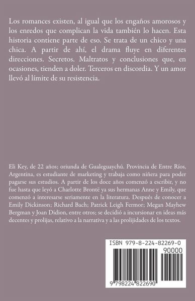 Los romances existen, al igual que los engaños amorosos y los enredos que complican la vida también lo hacen. Esta historia contiene parte de eso. Se trata de un chico y una chica. A partir de ahí, el drama fluye en diferentes direcciones. Secretos. Maltratos y conclusiones que, en ocasiones, tienden a doler. Terceros en discordia. Y un amor llevó al límite de su resistencia.