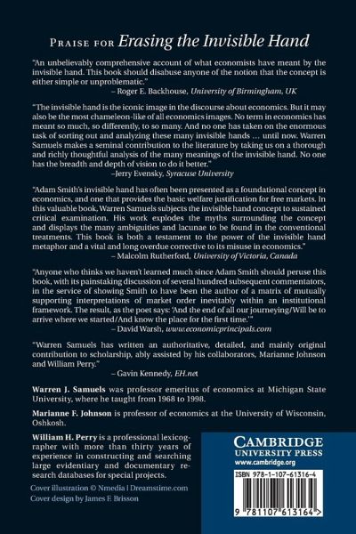 This book examines the use, principally in economics, of the concept of the invisible hand, centering on Adam Smith. It interprets the concept as ideology, knowledge, and a linguistic phenomenon. It shows how the principal Chicago School interpretation misperceives and distorts what Smith believed on the economic role of government. The essays further show how Smith was silent as to his intended meaning, using the term to set minds at rest; how the claim that the invisible hand is the foundational concept of economics is repudiated by numerous leading economic theorists; that several dozen identities given the invisible hand renders the term ambiguous and inconclusive; that no such thing as an invisible hand exists; and that calling something an invisible hand adds nothing to knowledge. Finally, the essays show that the leading doctrines purporting to claim an invisible hand for the case for capitalism cannot invoke the term but that other nonnormative invisible hand processes are still useful tools.