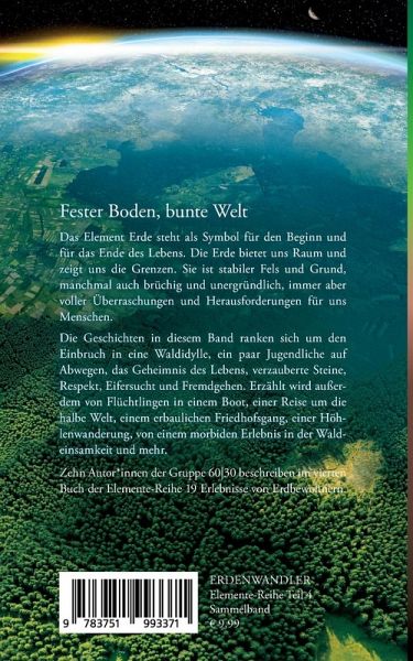 In ERDENWANDLER dreht sich alles um Erde. Sie ist das vierte Element, das sich unsere Autor_innengruppe 60 30 zum Thema nimmt, und vervollständigt die Anthologie-Reihe Elemente. Erde ist die feste Basis aller Dinge, sie gibt uns Sicherheit, den "festen Boden unter den Füßen", und steht für Realismus und alles Materielle. Das Element Erde steht als Symbol für den Beginn und für das Ende des Lebens. Die Erde bietet uns Raum und zeigt uns die Grenzen. Sie ist stabiler Fels und Grund, manchmal auch brüchig und unergründlich, immer aber voller Überraschungen und Herausforderungen für uns Menschen.Die Erde ist unser Heimatplanet, unser Zuhause, und eine Naturkraft in sich. Sie ist Sinnbild des Wachsens, der Fruchtbarkeit und Vielfalt, nicht nur in Flora und Fauna, sondern auch in uns selbst. Die Geheimnisse und Wunder unserer Welt werden wir vielleicht nie bis ins Letzte entschlüsseln.Die Geschichten in diesem Band ranken sich um den Einbruch in eine Waldidylle, ein paar Jugendliche auf Abwegen, das Geheimnis des Lebens, verzauberte Steine, Respekt, Eifersucht und Fremdgehen. Erzählt wird außerdem von Flüchtlingen in einem Boot, einer Reise um die halbe Welt, einem erbaulichen Friedhofsgang, einer Höhlenwanderung, von einem morbiden Erlebnis in der Waldeinsamkeit und mehr.Zehn Autor_innen beschreiben im vierten Buch dieser Reihe 19 Erlebnisse von Erdbewohnern.Über die Anthologie-Reihe Elemente:Nach der 4-Elemente-Lehre antiker Naturphilosophen wie Empedokles entsteht alles Sein aus verschiedenen Mischungen der vier Essenzen Wasser, Feuer, Luft und Erde. Sie verkörpern die Prinzipien des Flüssigen, Verzehrenden, Gasförmigen und Festen. Alles auf dieser Welt besitzt demnach einen charakteristischen Anteil eines der Elemente. Später wurden ihnen weitere Eigenschaften zugeordnet, die sich bis weit in die Psychologie erstrecken. Ausgehend von dieser Lehre ist jedem von uns ein mehr oder weniger großer Anteil jeden Elements zu eigen und beeinflusst unser Sein und Handeln. Die Geschichten unserer Elemente-Reihe handeln von diesem Einfluss auf die Menschen und die Welt, in der wir leben.Weitere Bücher der Reihe, erhältlich als Taschenbuch und Ebook:JAHRHUNDERTFLUTHochwassergeschichten aus Köln, Elemente Buch 1ISBN 978-3-74316-180-1FLAMMENSPIELGeschichten über das feurige Element, Elemente Buch 2ISBN 978-3-75283-253-2STURMGESANGGeschichten über Luft, Liebe und das Leben, Elemente Buch 3ISBN 978-3-73477-389-1
