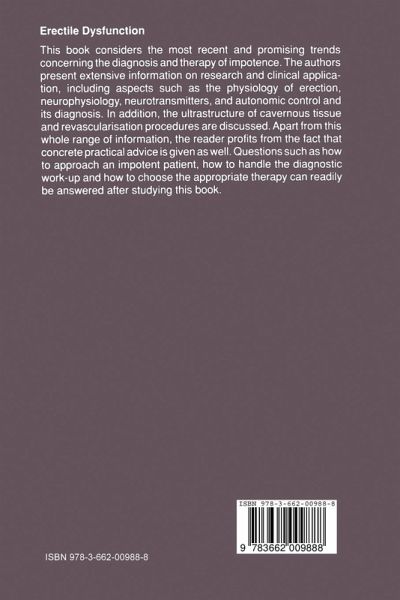 The basic principles of the phenomenon "erection" have been known since the pioneering work of Kolliker, Eckhard and Langley in the nineteenth century. Nonetheless, under the influence of Freud, erectile dysfunction was predominantly at tributed to psychogenic factors. A more liberal perception of sexuality since the 1960s, the development of new and refined diagnostic techniques, and the expansion of basic research activity resulted in a new concept of erectile dysfunction, identifying arteriogenic, venogenic, endocrinologic or myopathic (cavernous smooth muscle dysfunction) factors. From this research other considerations such as autonomic innervation, cavernous endo thelial intactness or impaired neurotransmitter pool are being introduced into routine clinical assessment. A reevaluation of psychogenic etiology with a consequential new concept of psy chogenic impotence is on the rise. In this book the new concepts of basic knowledge on cavernous smooth muscle function and its supraspinal, spinal, and local control; the new diagnostic approaches in psychogenic and autonomic factors; and the new developments of reconstructive therapeutic options for the patient have been tied together. Outstanding and internationally renowned experts in the field of erectile dysfunction have given detailed insight into the latest basic and clinical developments. Well-established diagnostic and thera peutic techniques are presented by experienced colleagues. We hope that this book will help the reader to get an overview of the current concepts of erection. Furthermore, we hope that international collaboration in basic and clinical research in the field of erectile dysfunction will render an update necessary in the near future.