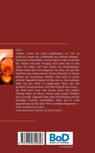 Wie Alkohol eine Familie zerstört.1993»Mama, wann hat Papa angefangen, zu viel zu trinken?«, fragte der Achtjährige mit zittriger Stimme.Marianne Brunndobler wischte ihrem Sohn Zacharias die Tränen von den Wangen und nahm ihn in den Arm. Sie saßen auf dem Boden im Wohnzimmer, direkt neben dem Fernsehgerät. Das Sofa war mit den Scherben des zerborstenen Tisches übersät, in dessen Resten ein Brecheisen steckte.»Ich weiß es nicht, Schatzi. Eigentlich kenne ich ihn nur so. Aber anfangs habe ich das nicht so empfunden. Dein Opa hat genauso viel getrunken. Und dein Urgroßvater auch.«Sie hielt kurz inne und dachte nach. Mit sanfter Stimme fügte sie hinzu: »Wenn man jedem Ereignis eine Ursache zugrunde legt, jede Entwicklung auf die jeweilige Ursache zurückführt, dann hat er wohl irgendwann um das Jahr 1900 zu trinken begonnen.«»Das verstehe ich nicht.«»Ich auch nicht, Schatz, ich auch nicht.«