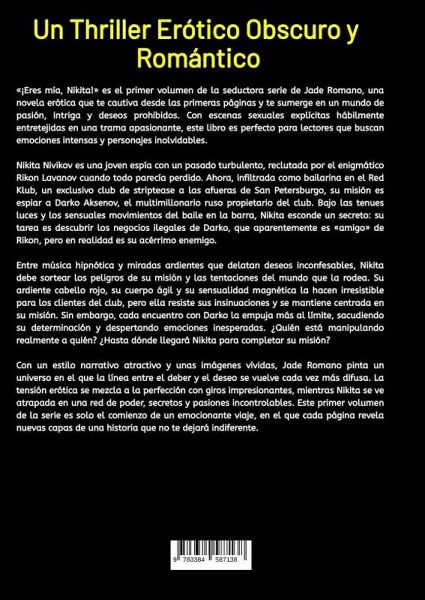 «¡Eres mía, Nikita!» es el primer volumen de la seductora serie de Jade Romano, una novela erótica que te cautiva desde las primeras páginas y te sumerge en un mundo de pasión, intriga y deseos prohibidos. Con escenas sexuales explícitas hábilmente entretejidas en una trama apasionante, este libro es perfecto para lectores que buscan emociones intensas y personajes inolvidables. Nikita Nivikov es una joven espía con un pasado turbulento, reclutada por el enigmático Rikon Lavanov cuando todo parecía perdido. Ahora, infiltrada como bailarina en el Red Klub, un exclusivo club de striptease a las afueras de San Petersburgo, su misión es espiar a Darko Aksenov, el multimillonario ruso propietario del club. Bajo las tenues luces y los sensuales movimientos del baile en la barra, Nikita esconde un secreto: su tarea es descubrir los negocios ilegales de Darko, que aparentemente es «amigo» de Rikon, pero en realidad es su acérrimo enemigo. Entre música hipnótica y miradas ardientes que delatan deseos inconfesables, Nikita debe sortear los peligros de su misión y las tentaciones del mundo que la rodea. Su ardiente cabello rojo, su cuerpo ágil y su sensualidad magnética la hacen irresistible para los clientes del club, pero ella resiste sus insinuaciones y se mantiene centrada en su misión. Sin embargo, cada encuentro con Darko la empuja más al límite, sacudiendo su determinación y despertando emociones inesperadas. ¿Quién está manipulando realmente a quién? ¿Hasta dónde llegará Nikita para completar su misión? Con un estilo narrativo atractivo y unas imágenes vívidas, Jade Romano pinta un universo en el que la línea entre el deber y el deseo se vuelve cada vez más difusa. La tensión erótica se mezcla a la perfección con giros impresionantes, mientras Nikita se ve atrapada en una red de poder, secretos y pasiones incontrolables. Este primer volumen de la serie es solo el comienzo de un emocionante viaje, en el que cada página revela nuevas capas de una historia que no te dejará indiferente. Si estás listo para sumergirte en un mundo donde el peligro acecha en cada esquina y el placer está siempre al alcance de la mano, «¡Eres mía, Nikita!» es la novela para ti. Una mezcla perfecta de erotismo y suspense, ideal para los amantes de las historias atrevidas y los personajes que traspasan todos los límites. Descubre el primer capítulo de esta impresionante serie y déjate llevar por un torbellino de emociones inolvidables.