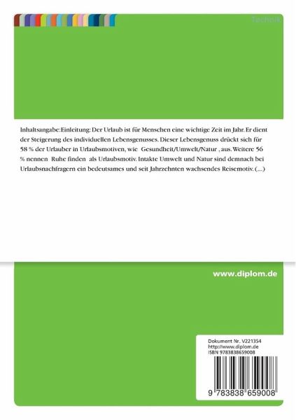 Der Urlaub ist für Menschen eine wichtige Zeit im Jahr. Er dient der Steigerung des individuellen Lebensgenusses. Dieser Lebensgenuss drückt sich für 58 % der Urlauber in Urlaubsmotiven, wie Gesundheit/Umwelt/Natur , aus. Weitere 56 % nennen Ruhe finden als Urlaubsmotiv. Intakte Umwelt und Natur sind demnach bei Urlaubsnachfragern ein bedeutsames und seit Jahrzehnten wachsendes Reisemotiv. Gleichzeitig stellen aber, unter anderen, Erholungssuchende und Touristen eine große Gefahr für die lokale Naturvielfalt dar. Ruhestörungen und lokale, wie globale, Umweltbelastungen sind daher negative Begleiterscheinungen des Tourismus und Gefahren für die Erlebnis- und Erholungsqualität der Urlaubsregion.