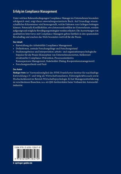 Entwicklung des Arbeitsfelds Compliance Management.- Definitionen, zentrale Forschungsfrage und Forschungsstand.- Studienergebnisse und Interpretation der Daten: arbeits- und organisationspsychologische Impulse für die Praxis.- Forschungsmethode: Design, Instrumente, Durchführung.- Zusammenfassung und Ausblick.