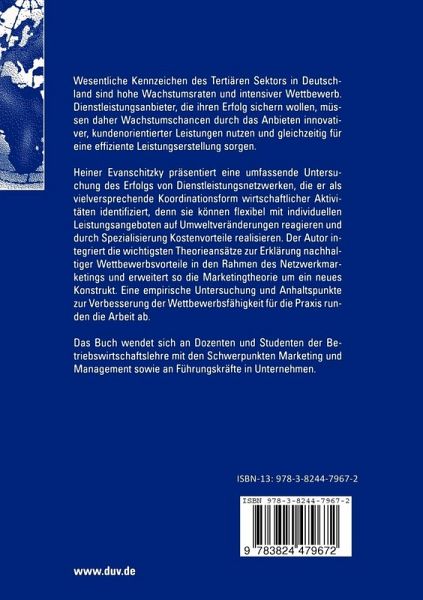 Heiner Evanschitzky präsentiert eine umfassende Untersuchung des Erfolgs von Dienstleistungsnetzwerken, die er als vielversprechende Koordinationsform wirtschaftlicher Aktivitäten identifiziert, denn sie können flexibel mit individuellen Leistungsangeboten auf Umweltveränderungen reagieren und durch Spezialisierung Kostenvorteile realisieren. Der Autor integriert die wichtigsten Theorieansätze zur Erklärung nachhaltiger Wettbewerbsvorteile in den Rahmen des Netzwerkmarketings und erweitert so die Marketingtheorie um ein neues Konstrukt. Eine empirische Untersuchung und Anhaltspunkte zur Verbesserung der Wettbewerbsfähigkeit für die Praxis runden die Arbeit ab.