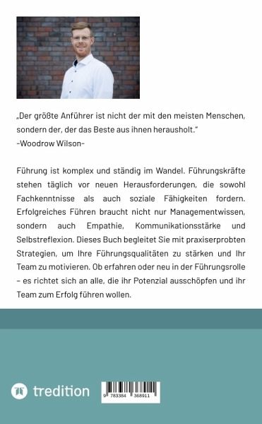 "Der größte Anführer ist nicht der mit den meisten Menschen, sondern derjenige, der das Beste aus ihnen herausholt."-Woodrow Wilson-In unserem Fachbuch geht es darum, Führung auf einer neuen Ebene zu verstehen. Wir beleuchten, wie Sie als Führungskraft Ihr volles Potenzial ausschöpfen können, um nicht nur fachliche, sondern vor allem zwischenmenschliche Fähigkeiten weiterzuentwickeln. Führung ist komplex und stets im Wandel - daher zeigen wir Ihnen praxiserprobte Strategien und bewährte Ansätze, um Ihr Team zu motivieren, zu inspirieren und nachhaltig zum Erfolg zu führen.Unser Buch richtet sich an erfahrene Führungskräfte ebenso wie an Einsteiger, die sich weiterentwickeln wollen. Mit praktischen Beispielen und leicht umsetzbaren Tipps bieten wir Ihnen die Werkzeuge, um Ihre Führungsqualitäten zu stärken, Ihre Mitarbeiter zu fördern und eine leistungsstarke und positive Teamkultur aufzubauen.