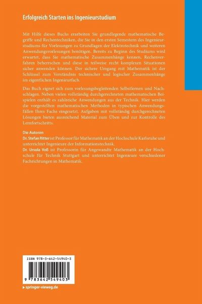Dr. Stefan Ritter ist Professor für Mathematik an der Hochschule Karlsruhe und unterrichtet Ingenieure der Informationstechnik. Dr. Ursula Voß ist Professorin für Angewandte Mathematik an der Hochschule für Technik Stuttgart und unterrichtet Ingenieure verschiedener Fachrichtungen in Mathematik.
