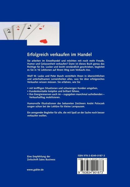 Sie arbeiten im Einzelhandel und möchten mit noch mehr Freude, Humor und Gelassenheit verkaufen? Dann ist dieses Buch genau das Richtige für Sie. Locker und leicht verständlich geschrieben, begleitet es Sie in 16 Lektionen auf Ihrem Weg zum Verkaufs-Ass.