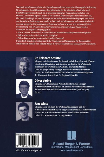 Erster Band der Reihe "Strategisches Management für Konsumgüterindustrie und Handel" von Roland Berger & Partner International Management Consultants. Warenwirtschaftssysteme haben in Handelsunternehmen eine überragende Bedeutung für erfolgreiche Geschäftsprozesse. Dies gilt sowohl für die Vertriebs- und Beschaffungsprozesse als auch bei zwischenbetrieblichen Kooperationsvorhaben wie Efficient Consumer Response oder bei der Internet-Ökonomie. Vor dem Hintergrund aktueller Wettbewerbsbedingungen beschreibt das Buch die Anforderungen an moderne Warenwirtschaftssysteme und unterstützt bei der Auswahl geeigneter Standardsysteme. Basierend auf der neuesten deutschsprachigen Untersuchung von Warenwirtschaftssystemen werden folgende Fragen beantwortet: Wie ist bei der Auswahl von standardisierten Warenwirtschaftssystemen vorzugehen? Welche Alternativen sind am Markt verfügbar? Welche Eigenschaften besitzen die aktuellen Systeme?