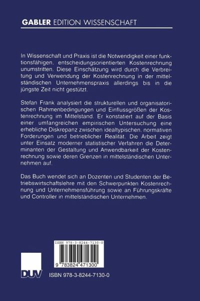 Geleitwort Die Kostenrechnung steht seit langem im Fokus der Forschung des Lehrstuhls für Controlling & Logistik der WHU. Dies gilt auch für deren Bezug zum Mittelstand. Eigene konzeptionelle Beiträge (z. B. in "Kostenrechnung im Mittelstand") wurden durch empirische Arbeit unter stützt, insbesondere durch die Dissertation von Kosmider. Jüngste empirische Arbeiten kommen hinzu (Dissertationen von Aust und Reitmeyer, die beide in dieser Schriftenreihe erschienen sind). Dennoch bestand bis zur vorliegenden Arbeit ein erhebliches Forschungsde fizit hinsichtlich der Ausprägung der Kostenrechnung in unterschiedlichen mittelständischen Kontexten und ihrer Wirkung auf den Erfolg der Unternehmen. Ein Defizit, das durch die wenigen bislang vorliegenden empirischen Studien aufgrund deren methodischer (z. B. kleine Stichproben, rein deskriptive Ausrichtung) und konzeptioneller Begrenzungen (z. B. Ver nachlässigung unterschiedlicher Rollen der Kostenrechnung) nicht reduziert werden konnte. Dievorliegende Arbeit setzt sich deshalb zum Ziel, eine umfassende empirische Untersu chung der Determinanten der Gestaltung und des Einsatzes der Kostenrechnung unter Einbeziehung internationaler Forschungsergebnisse und der Verwendung moderner statisti scher Verfahren zu leisten. Diesem Ziel wird Frank in jeder Hinsicht gerecht. Von den vielen wichtigen Ergebnissen seien im folgenden nur einige wenige gesondert herausgehoben: - Anders, als dies die vielen Postulate in der einschlägigen Literatur nahelegen, gilt für die Kostenrechnung im Mittelstand in den vergangeneu 15 Jahren ein weitgehender Entwicklungsstillstand. Die empirische Analyse zeigt, daß hierfür strukturelle und personenbezogene Gründe maßgeblich sind. Kostenrechnung ist in der Tat kein über alle Unternehmen kritiklos zu stülpendes Instrument.