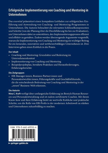 Einführung Coaching und Mentoring.- Überzeugende Argumente für die Geschäftsführung, Entscheiderinnen und Führungskräfte.- Implementierung von Coaching und Mentoring im Unternehmen.- Kommunikationsstrategie.- Peer-Coachings.- Praktische Leitfäden.- Erfahrungsberichte.