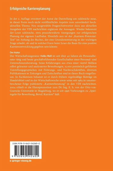 Neu und umfassend bearbeitet präsentiert das Buch nun auch ein sorgfältig gestaltetes Konzept zur Durchführung einer Karriereplanung. Aus der Erfahrung langer praktischer Beratung entstanden, methodisch aufgebaut und mit leicht nachvollziehbaren Begründungen für die Details, bieten diese Ausführungen einen wertvollen Handlungsleitfaden für die erfolgreiche Berufstätigkeit. Weiterhin enthalten bleiben der neu bearbeitete praktische Teil mit konkreten Beispielen, Fragen und Antworten aus der Karriereberatung, bekannt u.a. aus den VDI Nachrichten. Diese Beiträge sind thematisch zusammengefasst und geordnet. Auch beibehalten und neu bearbeitet wurde der Karrierepotenzialtest, ein vom Autor entwickeltes, vielfältig in der Praxis bewährtes Werkzeug zum Selbsttest. Der Test gibt belastbare Hinweise auf die Voraussetzungen, die der karriereinteressierte Leser selber mitbringt. Gleichzeitig erweitert er das Verständnis für wichtige Fragestellungen der Karriereplanung.