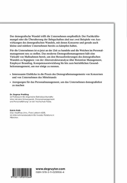 Der demografische Wandel trifft die Unternehmen empfindlich: Der Fachkräftemangel oder die Überalterung der Belegschaften sind nur zwei Beispiele von Auswirkungen des demografischen Wandels, mit denen Konzerne und gerade auch kleine und mittlere Unternehmen bereits zu kämpfen haben. Für die Unternehmen ist es jetzt an der Zeit, zu handeln und die Weichen im Personalmanagement neu zu stellen. Das moderne Demografiemanagement hält eine Vielzahl von Maßnahmen bereit, um den Herausforderungen des demografischen Wandels zu begegnen: von der Altersstrukturanalyse über Retention Management, Employer Branding, Kompetenzentwicklung bis hin zum betrieblichen Gesundheitsmanagement, um nur einige zu nennen.