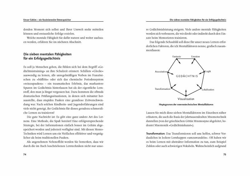 Vom 4-fachen GedächtnisweltmeisterEinfach besser merken: Zahlen, Fakten, Namen, Zusammenhänge, Vokabeln oder RedenAusgeklügelte, aber einfach zu lernende MemotechnikenEinfach umzusetzen - sichtbare Erfolge schon in kürzester Zeit.Mit diesen Techniken kann jeder seine Gedächtnisleistung um ein Vielfaches steigern.Mit ausführlichem Test des Gedächtnisquotienten und genauemTrainingsplan.
