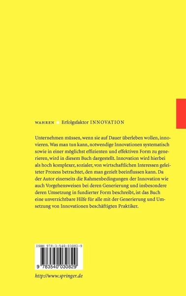Was man tun kann, um notwendige Innovationen systematisch und möglichst effizient und effektiv zu generieren, zeigt das Buch. Innovation wird hierbei als hoch komplexer, sozialer, von wirtschaftlichen Interessen geleiteter Prozess betrachtet, den man gezielt beeinflussen kann. Da der Autor einerseits die Rahmenbedingungen der Innovation wie auch die Vorgehensweisen bei deren Generierung fundiert beschreibt, spricht das Buch sowohl Praktiker als auch wissenschaftlich interessierte Leser an.